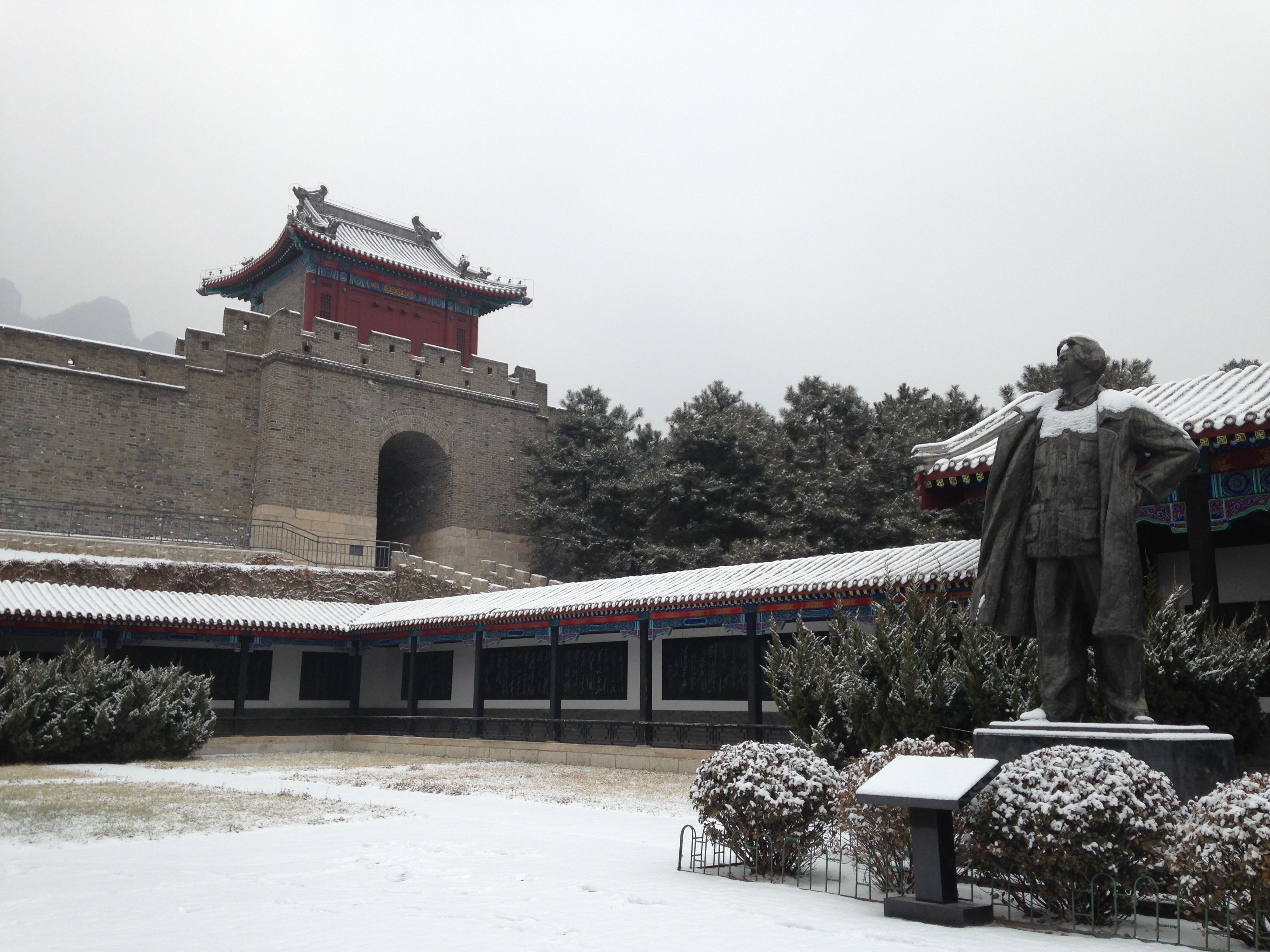 Am Sonntag sind wir zusammen mit 4 Kollegen zu einem Teilstück der Großen Mauer nach Huangyaguan, ca. 130 km nördlich von Tianjin, gefahren. Der Fahrer der Firma brachte uns ganz komfortabel mit einem VW-Bus an Ort und Stelle. Dort mussten wir feststellen, dass Schnee lag und wir zwar mit Mütze, Handschuhen und dicken Jacken, aber nicht mit Schuhen mit Profil ausgerüstet waren. Die meisten von uns schlitterten nun also die Mauer entlang 🙂