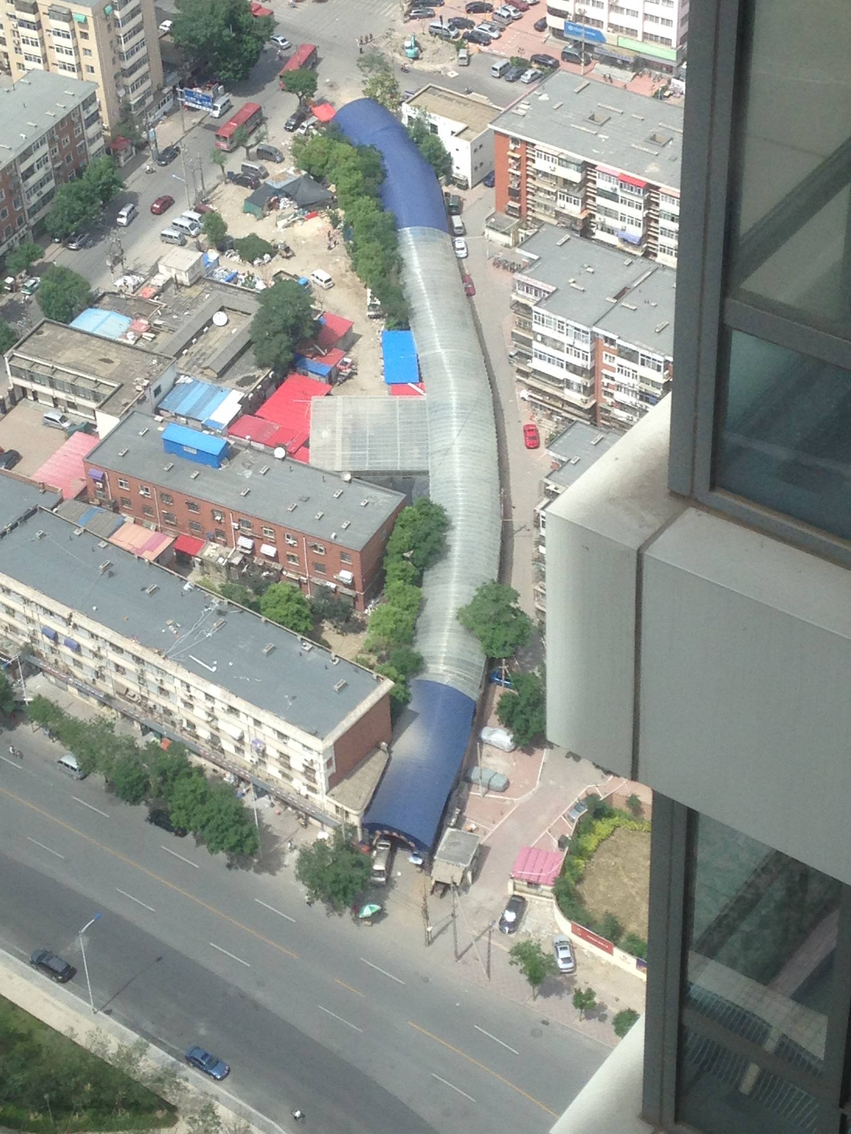 Die Stände unseres Markts in Tianjin liegen in einer Gasse mit Dachkonstruktion, da der Markt zu jeder Jahreszeit und jedem Wetter stattfindet: