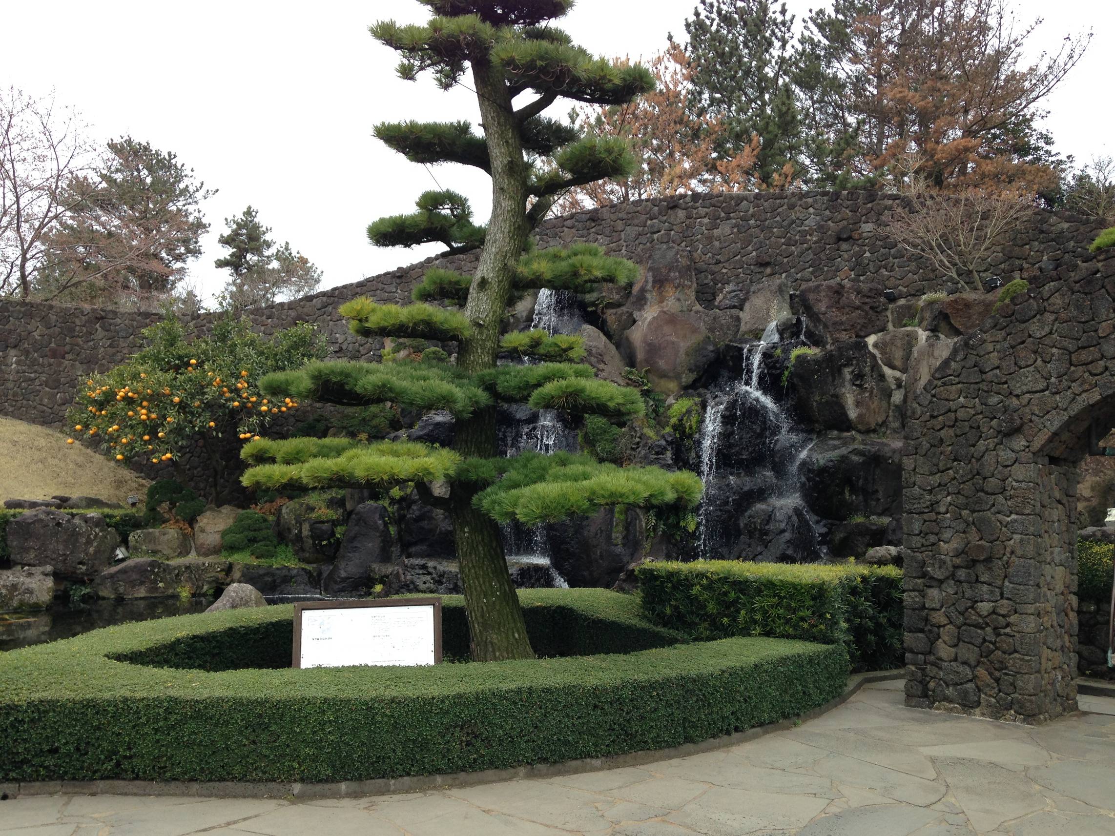Im Vorfeld hatten wir online zwei Bustouren (West und East Coast) mit englischem Guide bei Yeha-Bustours gebucht, die wirklich zu empfehlen sind. Freitags starteten wir also um 8:30 Uhr mit der West Tour. Mit 22 anderen Leuten unterschiedlichster Nationen fuhren wir samt chinesischen und englischen Guide zum ersten Sightseeing-Punkt auf dem Programm: Hallim Park. Ein wunderschön angelegter Park mit botanischen Garten, einem Bonsai-Garten, einem kleinen Zoo, Wasserfällen, etc: