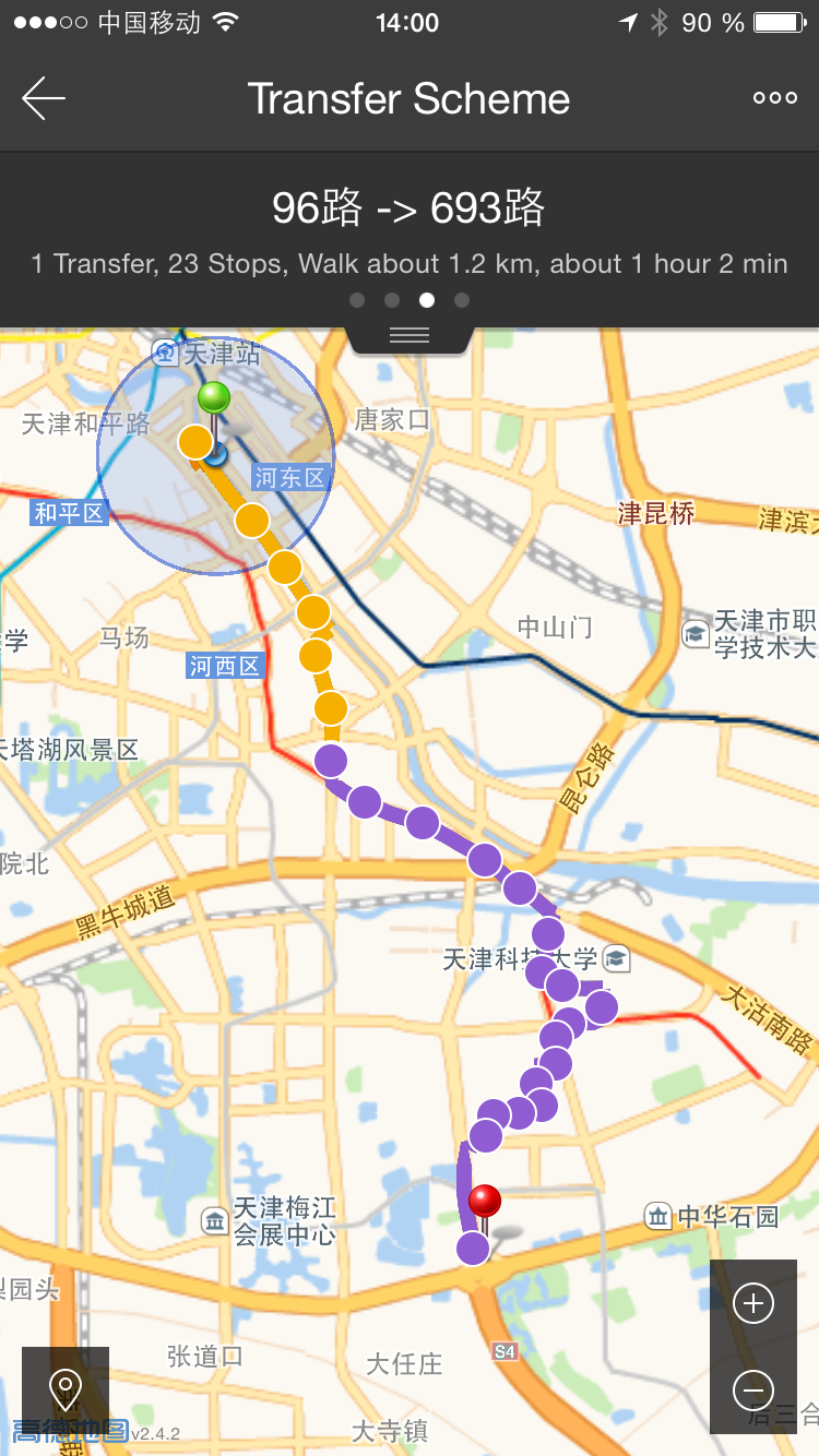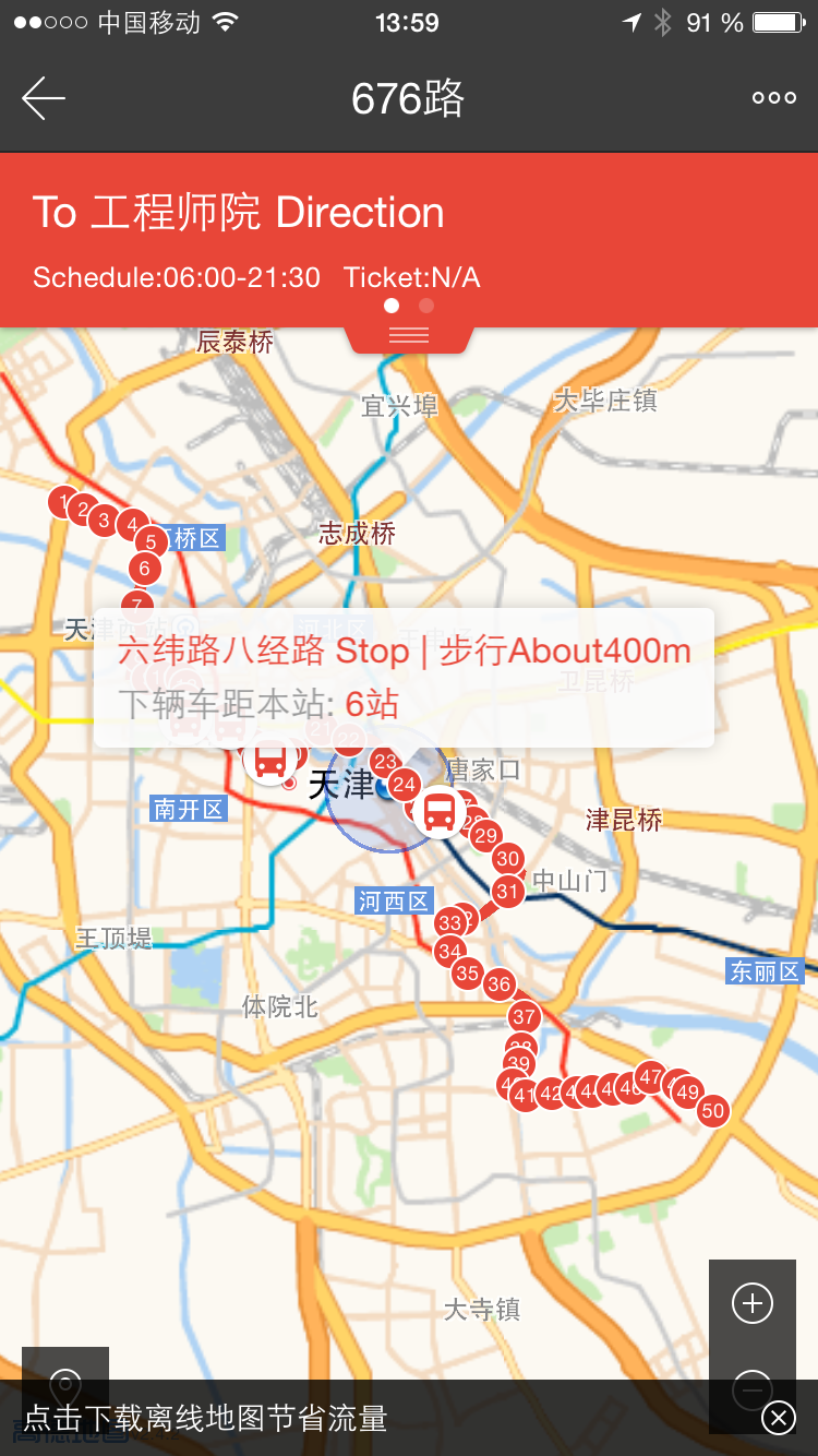 Wem Baidu Maps zu kompliziert ist, dem wird PandaBus sicherlich gefallen. Die App ist super intuitiv zu benutzen, mit einem Klick werden alle Buslinien in der Nähe angezeigt. Die einzelnen Buslinien können dann in der Karte vollständig angezeigt werden. So kann man einfach erkunden, wohin welche Linien vor der Haustüre fahren. Einfacher geht es nicht! Einen Routenplaner gibt es auch, hier braucht man keine Sprachkenntnisse – nur grobe Ortskenntnisse: einfach den Cursor zum Ziel auf der Karte bewegen und los geht die Reise!