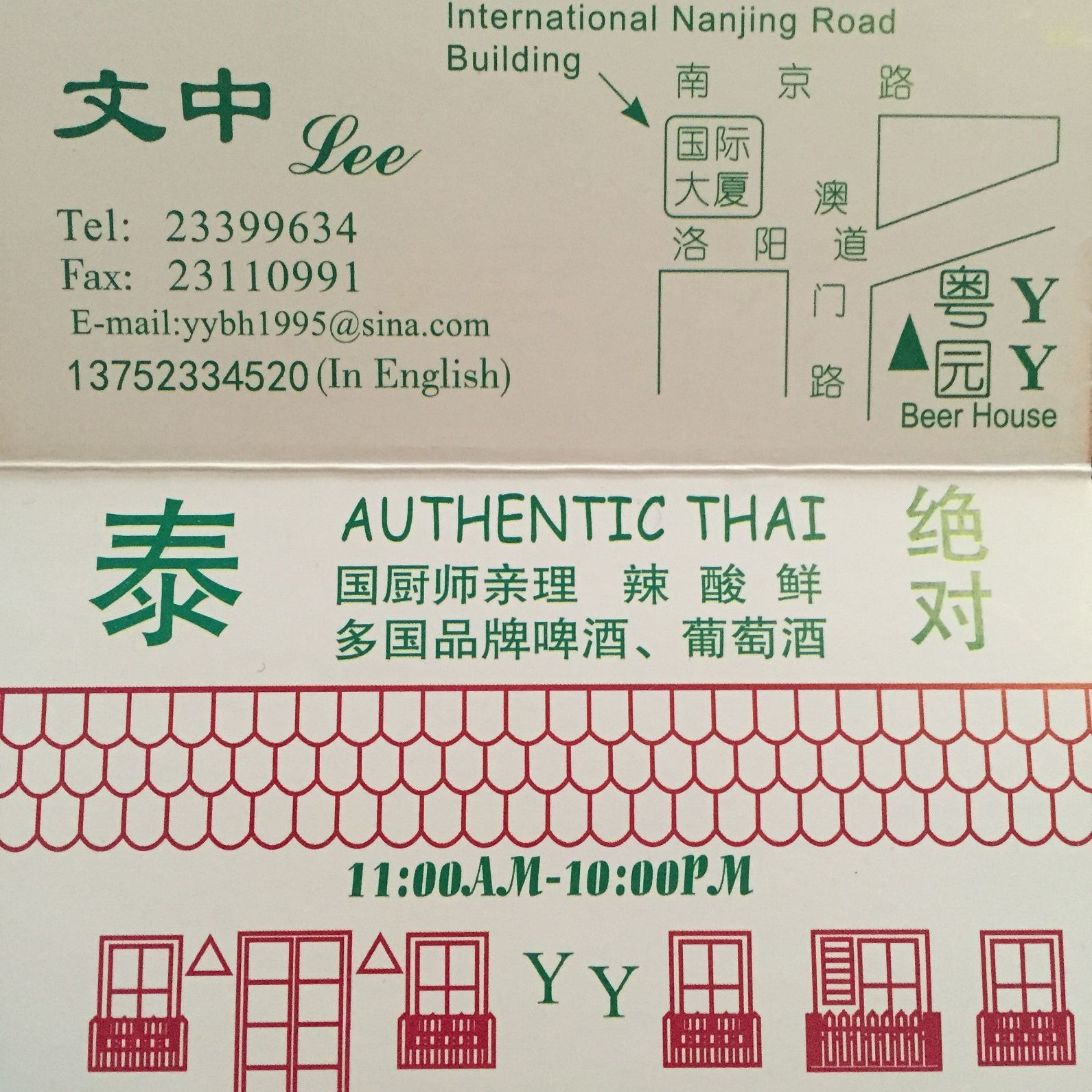 YY’s Beer House ist eins der ersten Thai-Restaurants in Tianjin. Der Eingang ist verwirrend, es gibt ein YY Thai House und ein YY Beer House – beide sind aber direkt mit einander verbunden. Also einfach eintreten. YY steht für 粤园 – Yue Yuan – Kanton Garten 🙂